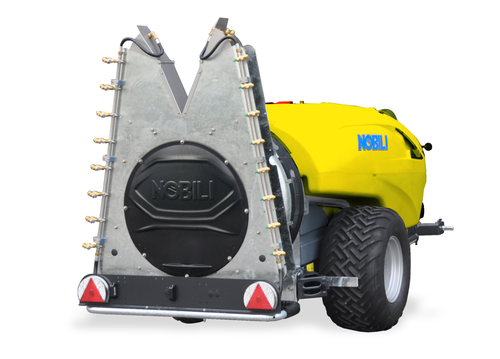 Range of professional trailed sprayers with large air volume for treatments on vineyards, orchards, olive groves and tall-trunk trees.The new tank designed by Nobili is available in 1000-1500 and 2000 litre capacities and is provided with 3 independent tanks integrated into a single body. The large pump compartment simplifies the maintenance of the machine parts, fitted on a robust hot-galvanized frame. Equipped with cataphoresis-treated high-pressure pumps or high-pressure brass pumps with flow rates from 120 to 170 litres/minute. Thanks to the double pneumatic mixer, mixing is effective even with the most concentrated solutions.