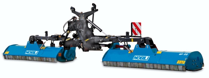 For the shredding on green areas, grassy cultivation, corn and bushes.BP mulchers are tractor-mounted machines to be fitted to the three-point linkage of the rear tractor lift. Ideal to shred grass, bushes, pruning, corn and for the maintenance of wide green areas and fallow lands. Multi-purpose and sturdy, BP mulchers are supported by a roller or wheels adjusting the working height. The BP range is equipped with a rotor with eight rows of knife supports and two counter-knives that, together with the roller position, provide the best cut and the reduction of the power absorption. The BP series 10 are available both with fixed coupling and with hydraulic offset, while the BP series 100 are equipped with a strong hydraulic offset. The BP series 1000, in combination with the BPR 280 and BPR 305 models, guarantee high productivity both with front PTO and reverse drive tractors. Nobili mulchers are built in compliance with European regulations.