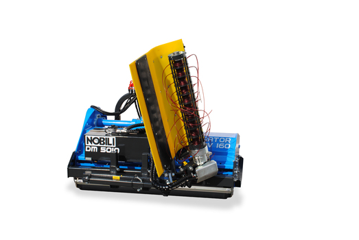The DM 5010 equipment for the inter-row mechanical weeding, that is equipped with a rotor with long nylon ropes, able to mechanically eliminate the weeds present in its range of action, without damaging the tree trunks. Thanks to the DM 5010, used in combination with the mulcher, it is possible to carry out two field operations in a single pass : maintenance and shredding of the grass in the row and in the under-row area. This leads to important savings linked to the tractor costs and labor times. It can be mounted on the mulchers BV series 100, VKD and BKE; fields of applications are vineyards, orchards, olive groves and agrivoltaic farms. It can be used on soils of any mixture even in the presence of stones. This equipment used in combination with the mulcher, avoids using herbicides and other chemicals for the whole year. The operations of lengthening and reloading the ropes are extremely easy, thanks to the innovative locking-unlocking system and the open rotor. Furthermore, the rollup rotor shaft system ensures a great autonomy of work. It can be operated by direct connection to the tractor through quick couplings, or it can be provided with an independent hydraulic circuit.50 cm maximum working height.