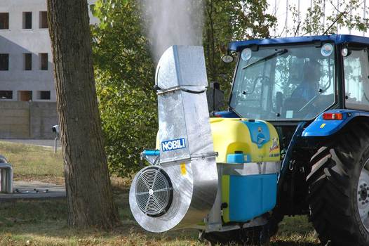 Atomizzatore portato con girante centrifuga.Gli atomizzatori Nobili JET sono attrezzature di tipo portato, applicabili ai tre punti del sol-levatore, ideali per trattamenti su colture erbacee, piante ad alto fusto e in serra. Costruiti con telaio rinforzato e turbina maggiorata con doppia aspirazione, gli atomizzatori JET assicurano con un ingombro ridotto una gittata potente e misurata, regolabile idraulicamente nell’inclinazione al fine di adattarsi con estrema praticità a diversi impianti. La gamma Jet è disponibile con cisterna in polietilene, serbatoi lavamani e lavaimpianto in conformità alle Normative Europee e può essere equipaggiata da numerosi accessori. La versione JET SR dispone anche di una rotazione della bocca di uscita di 110° sul piano verticale e di 210° sul piano orizzontale, entrambe idrauliche.