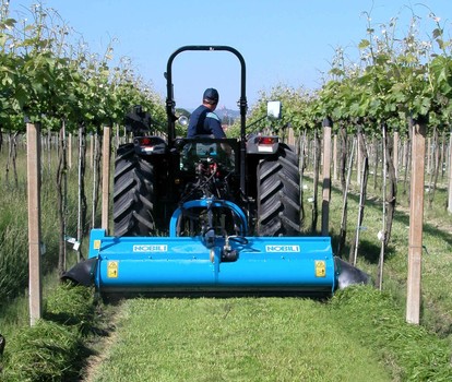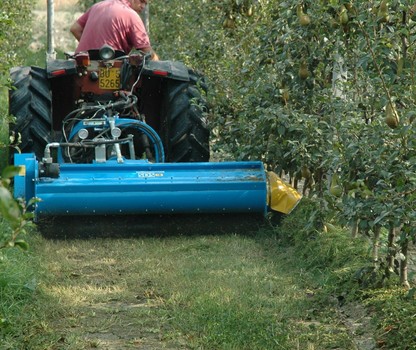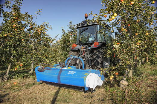 For mulched stubble in grassy vineyards and orchards.The patented SDS, Side Delivery System, is a device that allows to shred grass or grassy crops and discharge the chopped material in symmetrical windrows on both sides below the plants in vineyards and orchards. Many years of experimentation and cooperation with the Universities of Bologna and Florence, have demonstrated that SDS is a valid instrument for managing vineyards and orchards, thanks to the high productivity and the reduction of fertilizing and weed control treatments necessary to cultivations. SDS machines are supported by a roller or wheels adjusting thei working height and it is pos-sible to control the discharging speed (in windrows) to adequate the biomass rate according to the tractor speed and the grass height.SDS is available with single or double auger and with indipendent oil tank on option.